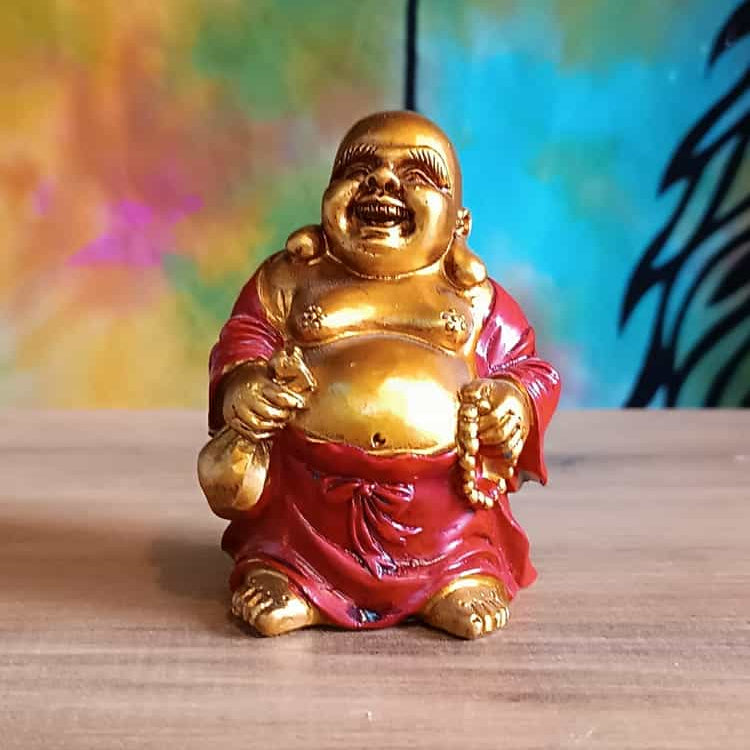 Ένα χαμογελαστό αγαλματίδιο Βούδα, ιδανικό για να προσθέσει μια αίσθηση ηρεμίας, αφθονίας και θετικής ενέργειας στον χώρο σου. Σύμφωνα με τις αρχές του φενκ σούι, ο Χαμογελαστός Βούδας τοποθετείται συχνά κοντά στην είσοδο (να “υποδέχεται” την καλή ενέργεια) ή σε σημείο που βλέπεις συχνά, όπως το σαλόνι ή ο χώρος εργασίας, ώστε να ενισχύει τη χαρά και τη θετική διάθεση.