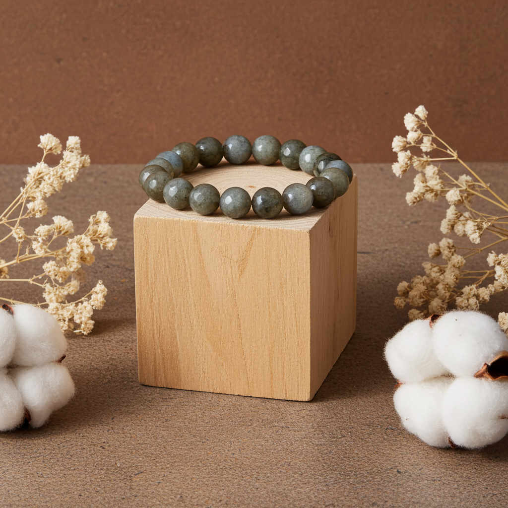 Βραχιόλι με φυσικό Λαβραδορίτη 8mm περασμένο σε ανθεκτικό ελαστικό νήμα (one size), για άνετη εφαρμογή και εύκολο φόρεμα κάθε μέρα. Ο λαβραδορίτης ξεχωρίζει για τις ιριδίζουσες ανταύγειές του και θεωρείται από τις πιο “δυνατές” πέτρες για όσους θέλουν να κρατούν την ενέργειά τους καθαρή και προστατευμένη.